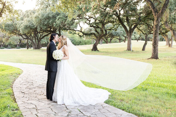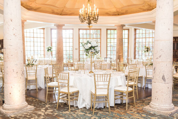 The Dominion Country Club provides an elegant setting throughout all the seasons. The outdoor venue offers majestic live oaks and hills of green, accented by a beautiful lake and a flowing fountain that sets the tone for a tranquil outdoor ceremony. Wedding guests sit on three levels of white-cushioned seats to ensure unobstructed views of the ceremony near a blooming flower bed alongside the Cantera-stone fountain. The sitting room features expansive floor-to-ceiling windows and Cantera-stone columns that encircle the dance floor beneath an octagonal dome. The Renaissance-style architecture carries over to the more-intimate wine room, where a magnificent chandelier hangs within a domed ceiling with a painted backdrop of sky inspired by Michelangelo's work. We’ll customize a package that exceeds your expectations, fits within your budget, and creates lasting memories for you and your guests. To learn more, click here.
